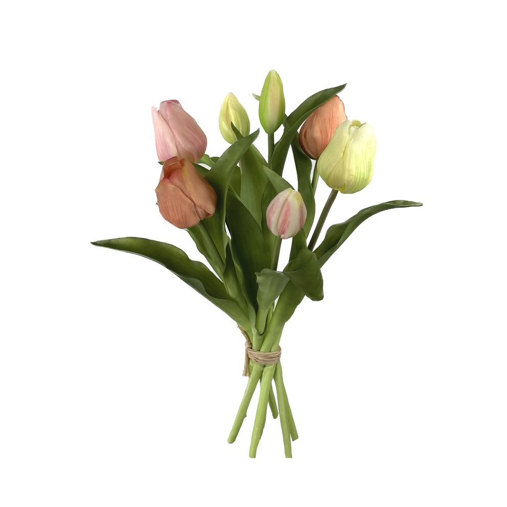 Real Touch Tulip Bundle x7 L30cm Pink/Peach Combo
