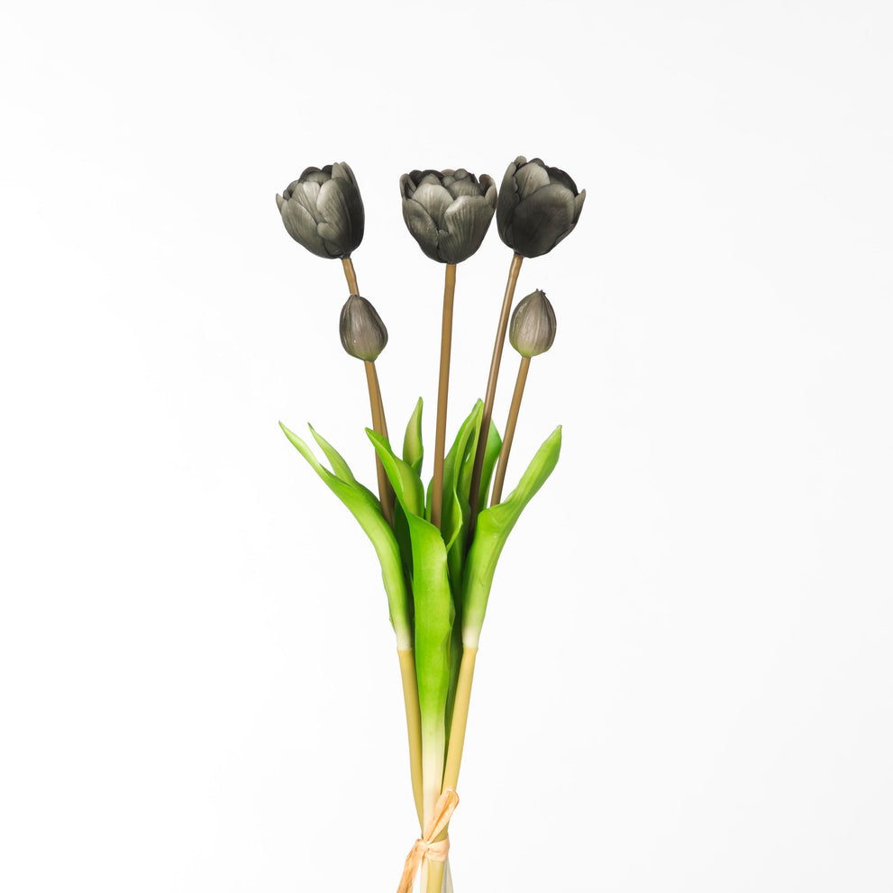 Real Touch Tulip Dubble Bundle x5 L44cm Black