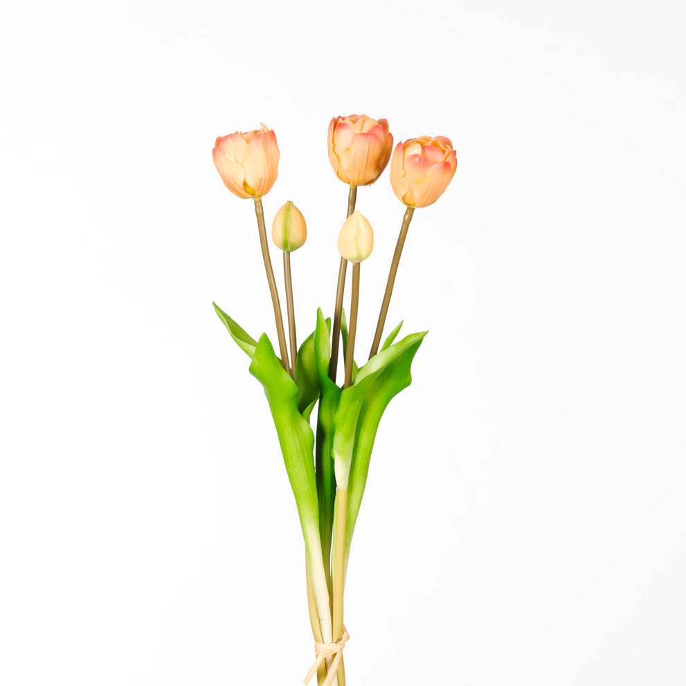 Real Touch Tulip Dubble Bundle x5 L44cm Salmon