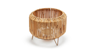 Reed lantern round Ø25,5x20cm natural + glass