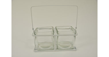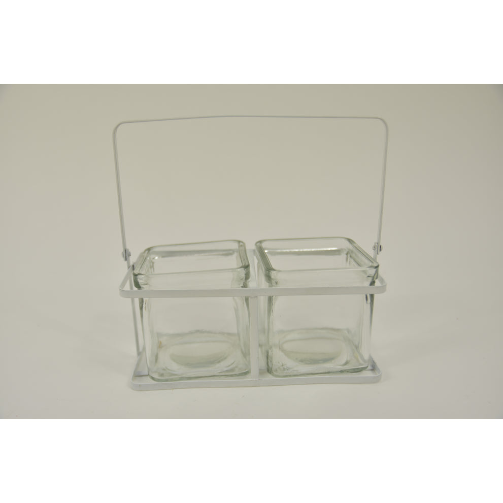 Rek metaal wit met 2 accuglazen 17x9x8/17cm