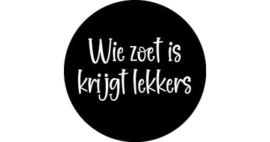 Rol 500 etiketten ''Wie zoet is krijgt lekkers'' Ø35mm
