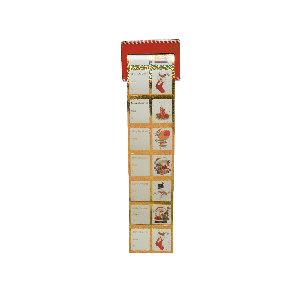 Rol 60 Sticker papier ''van, voor'' xmas goud 5x6x3,5cm