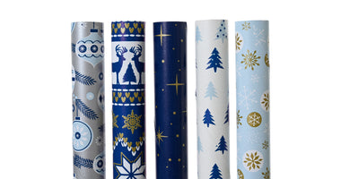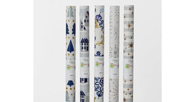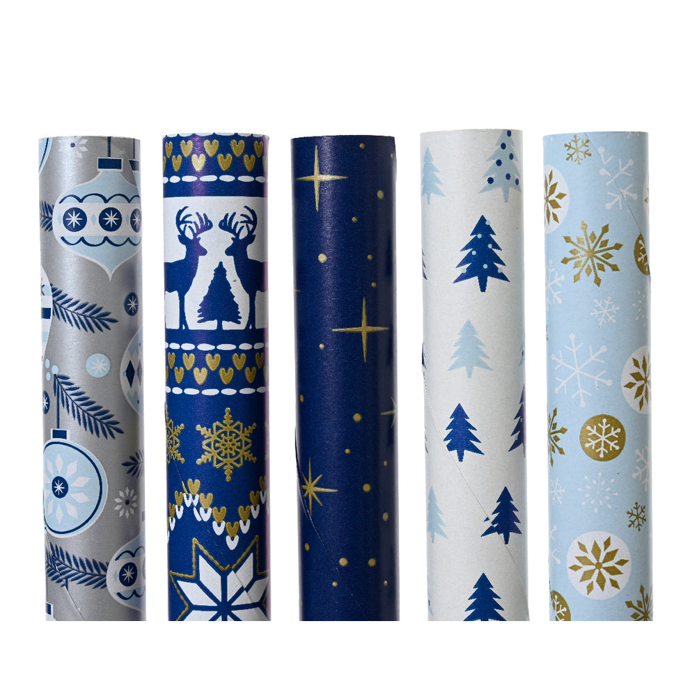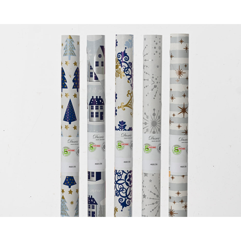 Rol inpakpapier papier 5 assortie blauw/wit 200x70cm