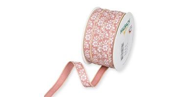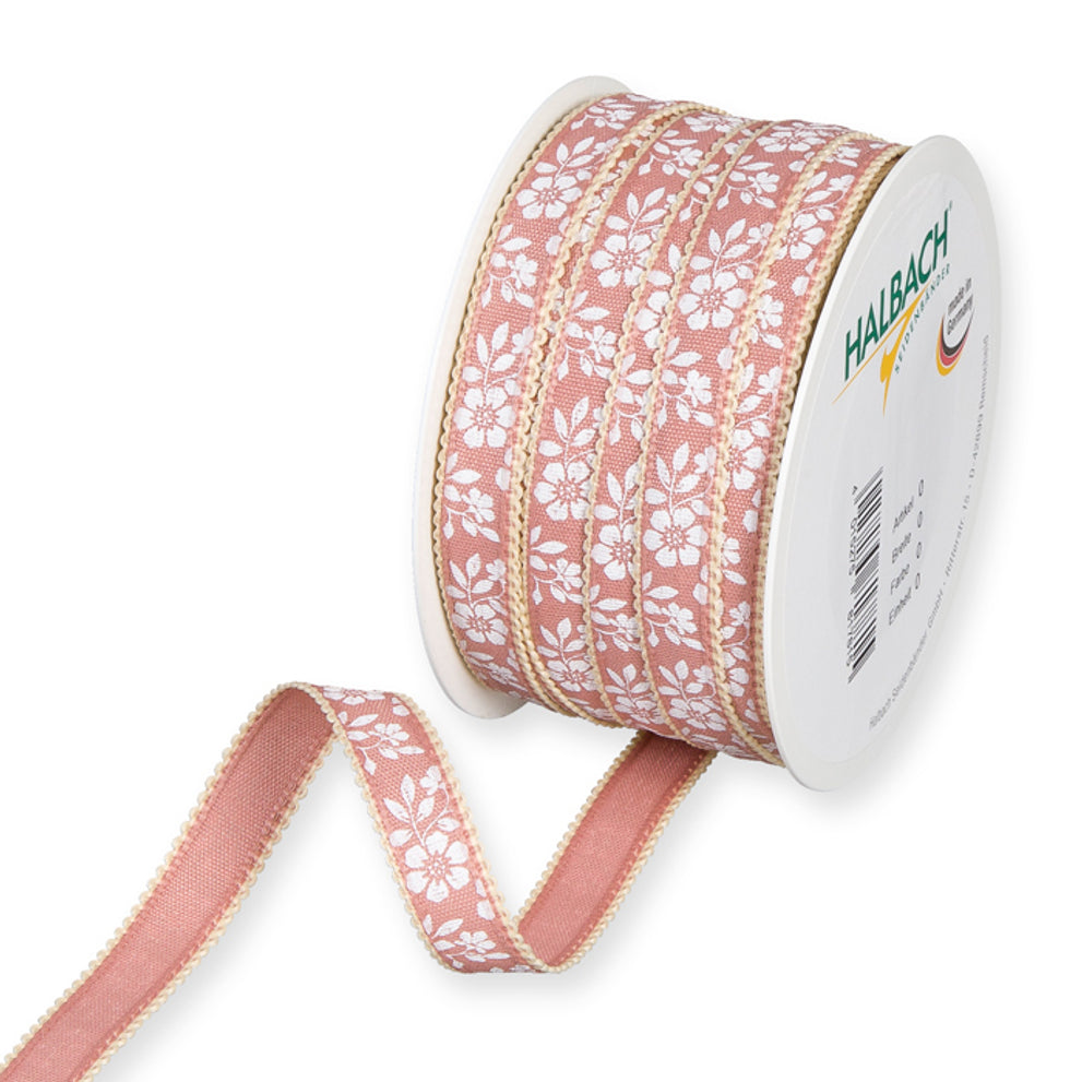 Rol Printlint "Bloemenpatroon" 15mm 25mtr blush rose/white