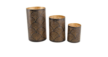 S/3 Candle holder metal round Ø12x18cm Black/Gold