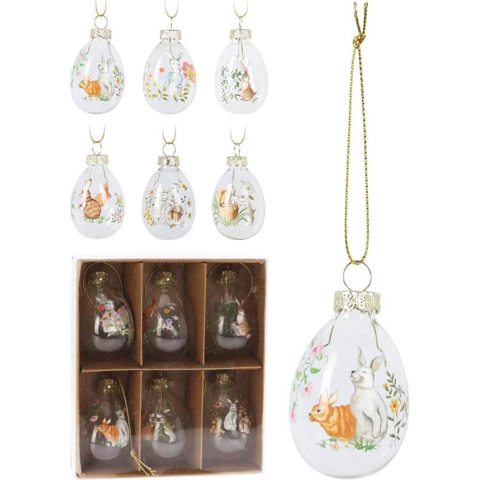 S/6 HANGDECO PAASEI GLAS 5,5CM MIX