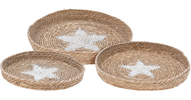 S3 ZEEGRAS PLATEAUS/SCHALEN D47/38/33CM NATUREL MET STER WIT