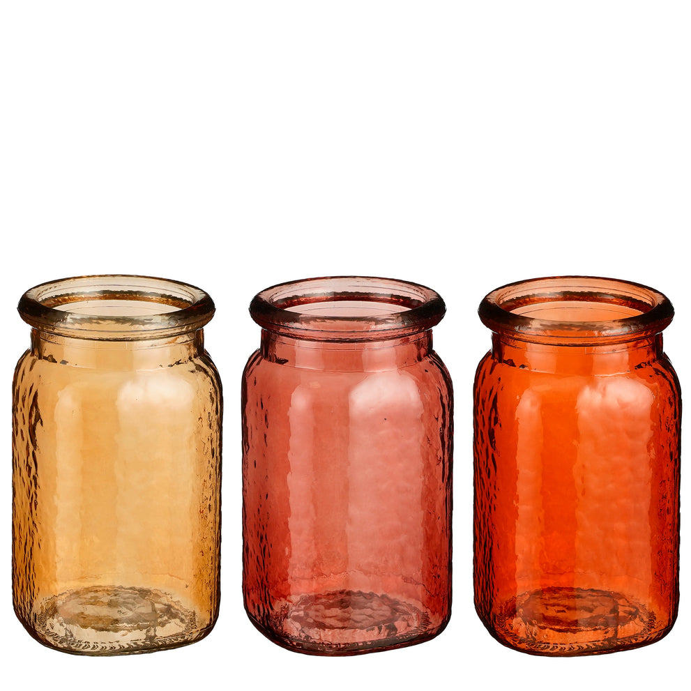 Sally vaas glas l.bruin l. roze orange 3 assorti - h16,5xd9,5cm