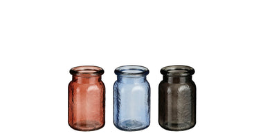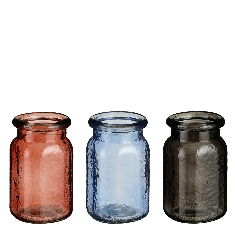 Sally vaas glas l.roze blauw zwart 3 assorti - h14xd8cm