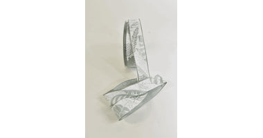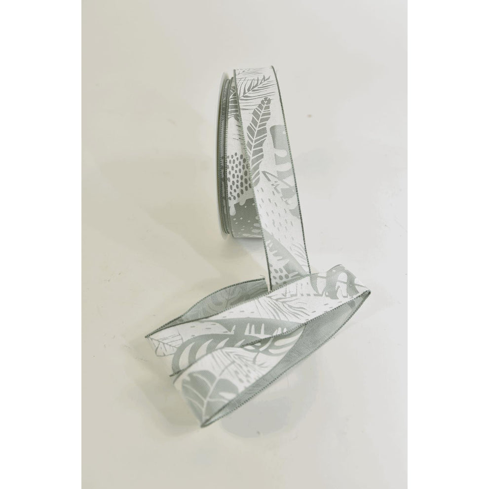 Satijnlint met opdruk bladeren 25mm 20mtr jade/wit