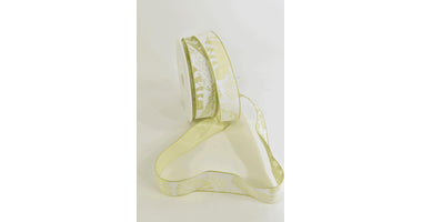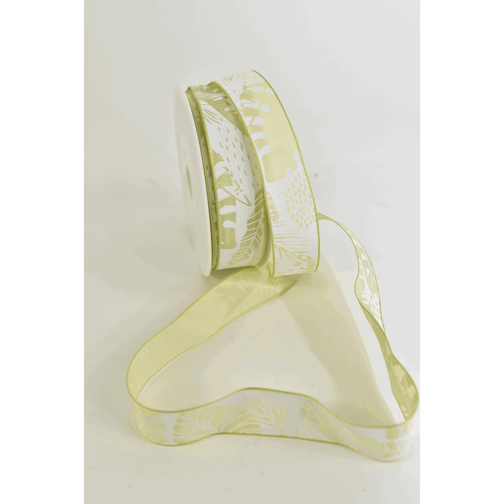 Satijnlint met opdruk bladeren 25mm 20mtr licht groen/wit