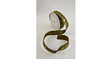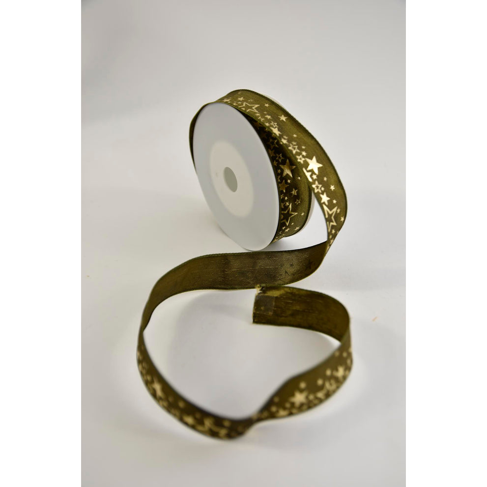 Satijnlint "Sterren" 25mm 25mtr mosgroen/goud