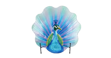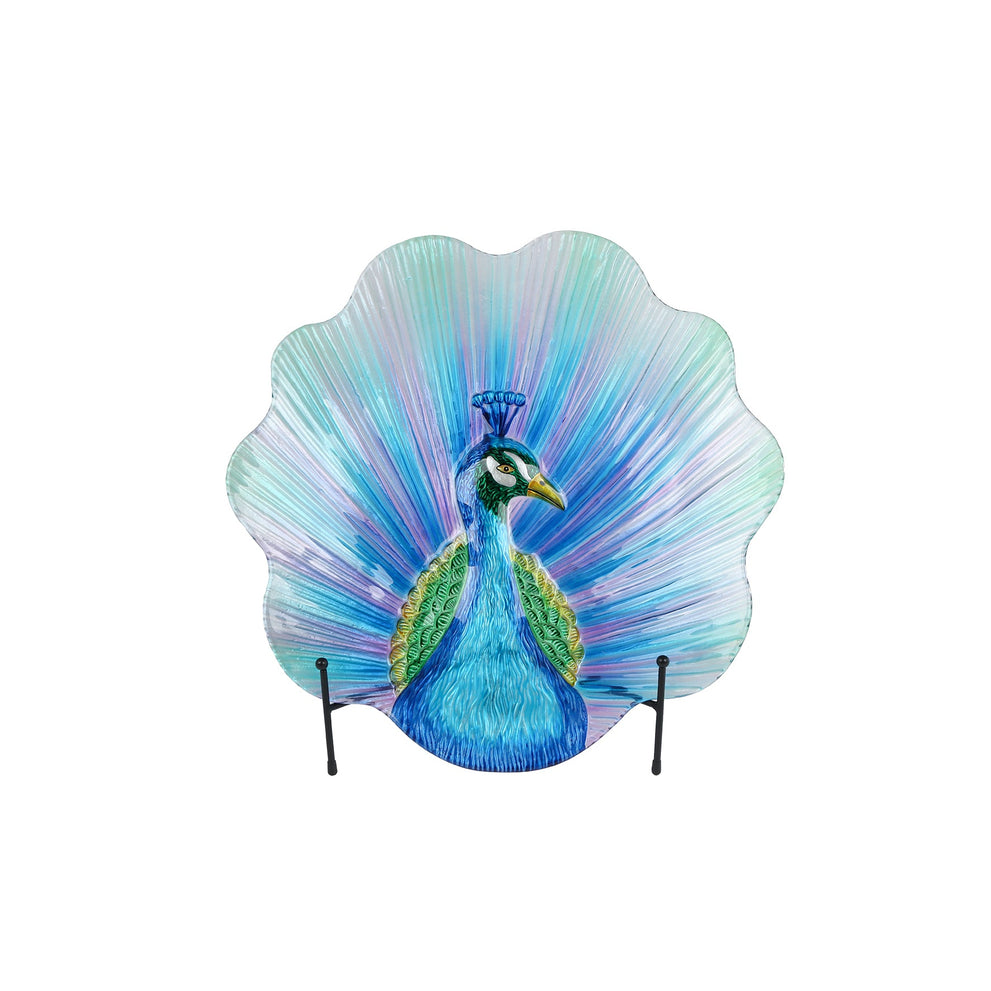 Schaal "Peacock" m/standaard paars/blauw glas 46x46x7cm