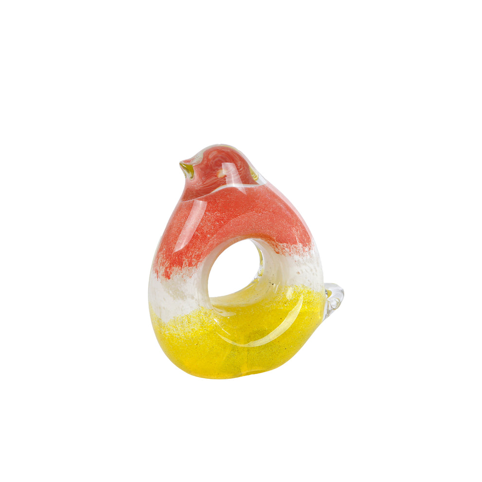 Sculptuur "Bird Hole" S roze/geel glas 9,5x4,5x9,5cm