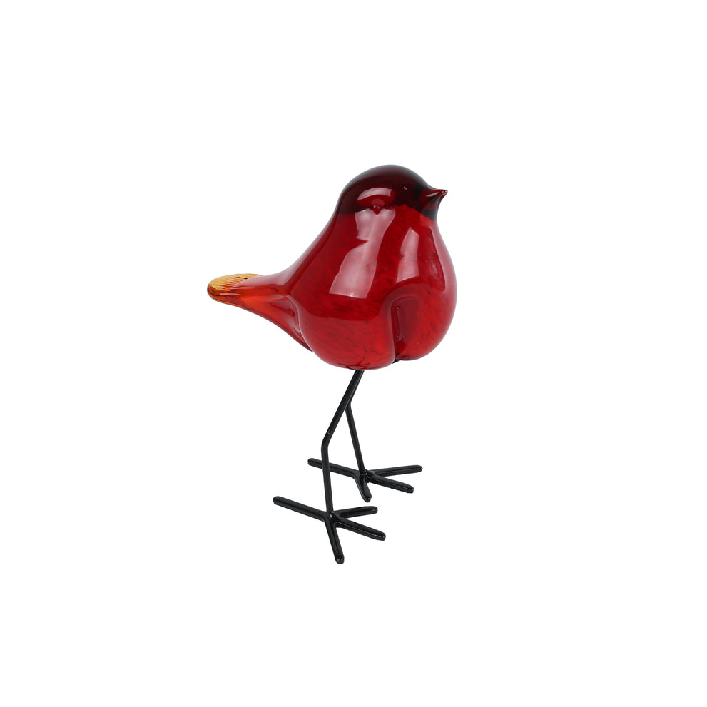 Sculptuur "Bird" op voet rood glas 11,5x8,5x15,5cm