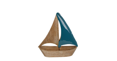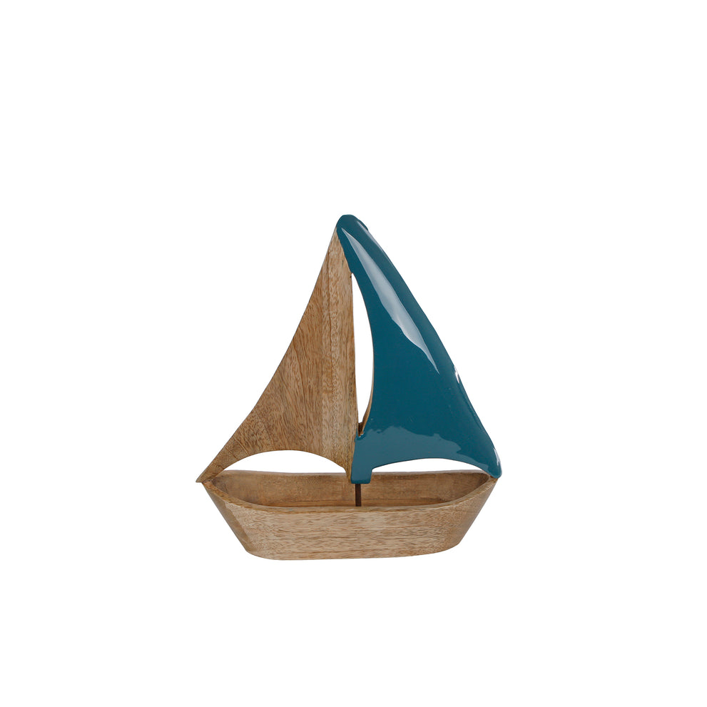 Sculptuur boot "Sail" S blauw/naturel mango 25x23x3cm