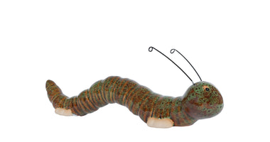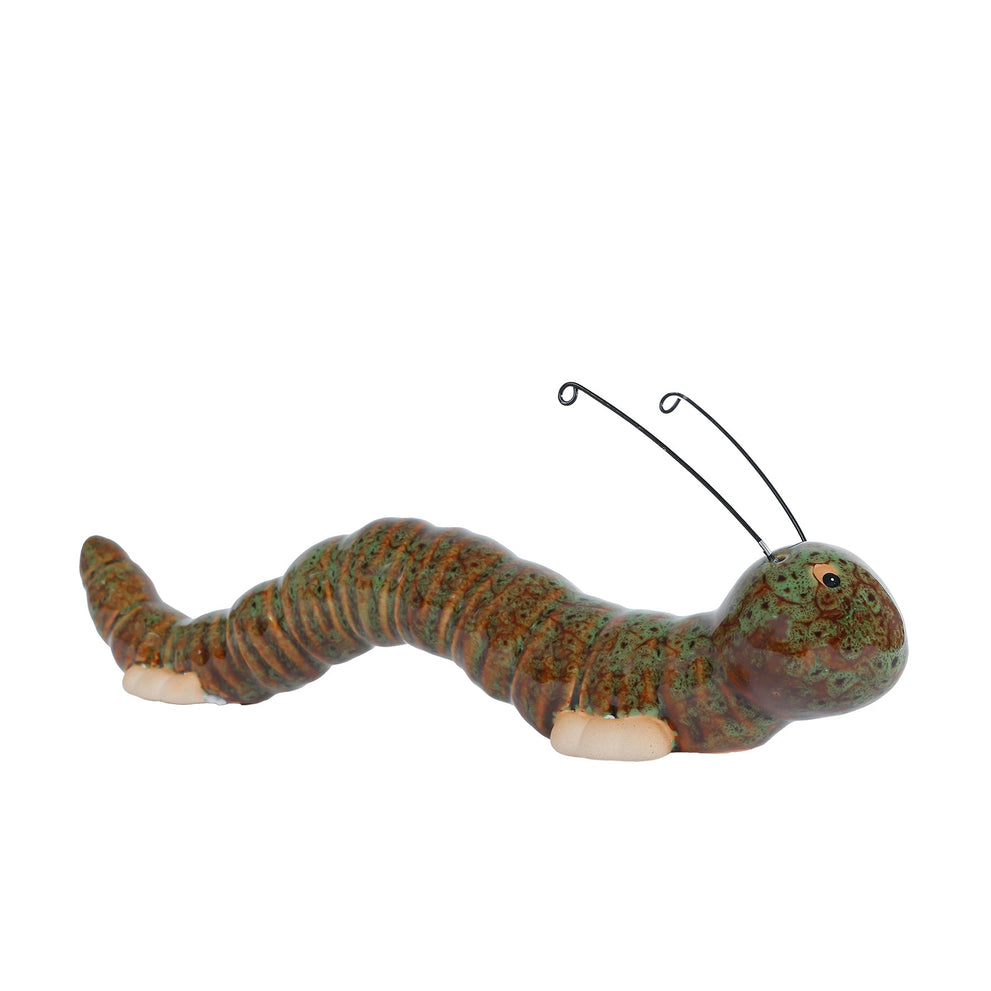 Sculptuur "Caterpillar" L bruin/groen aardew 22,5x4,5x8cm