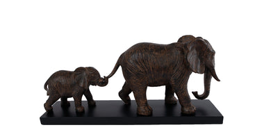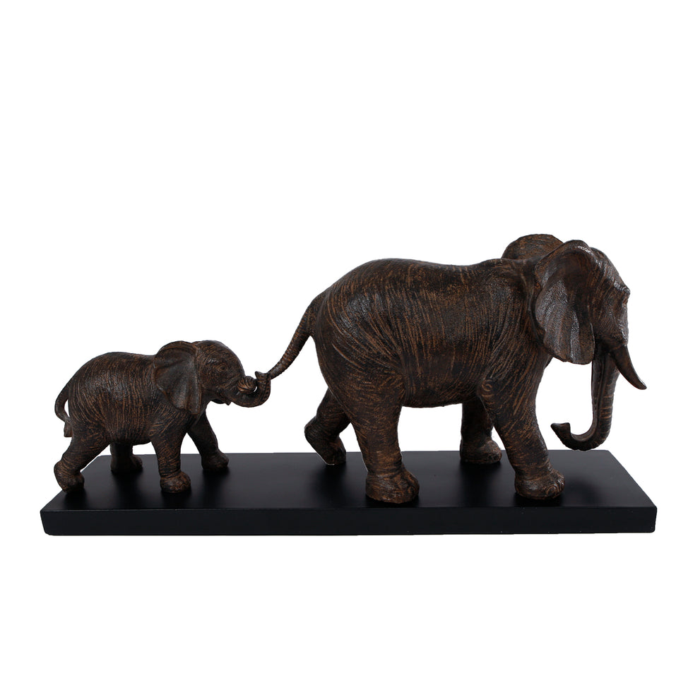 Sculptuur "Elephant family" bruin polystone 49x12x22cm