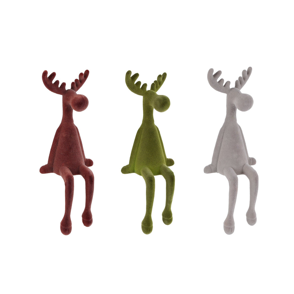 Sculptuur "Hert" zittend groen/d.oranje/l.taupe a3 flocked