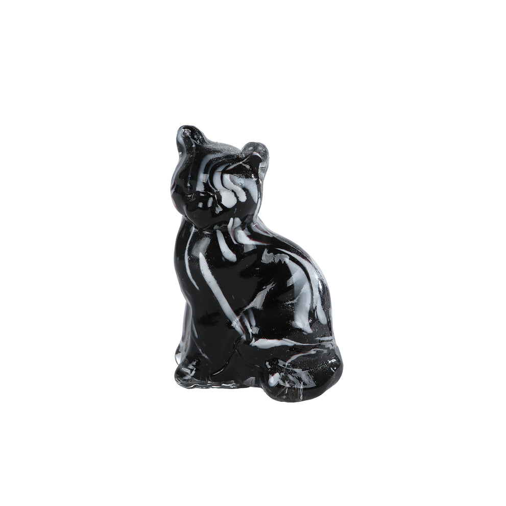 Sculptuur "Kat" grijs/zwart glas 6,5x5x10cm