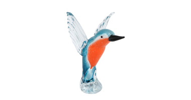 Sculptuur "Kolibri" oranje/blauw glas 16x15x20cm