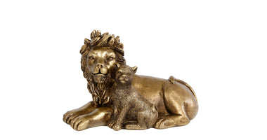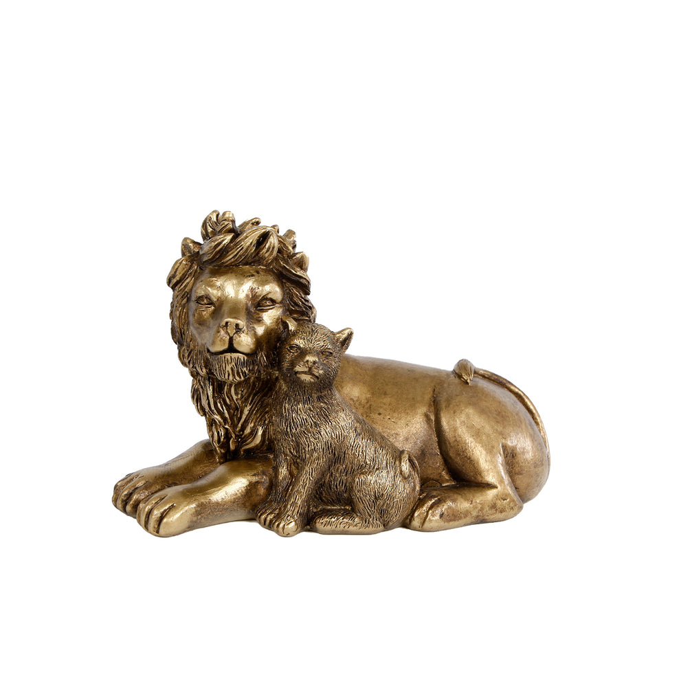 Sculptuur "Lion with cub" goud polystone 13x9x15cm