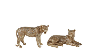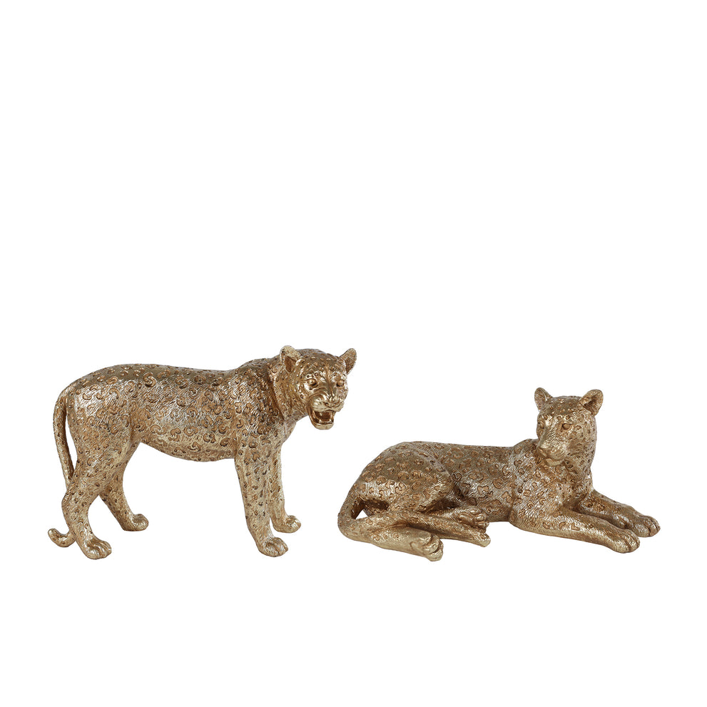 Sculptuur "Luipaard" goud 2 assortie polystone 30x14x21cm