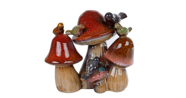 Sculptuur paddenstoel 3x "Forest" XL bruin aardewerk 23x16x21cm