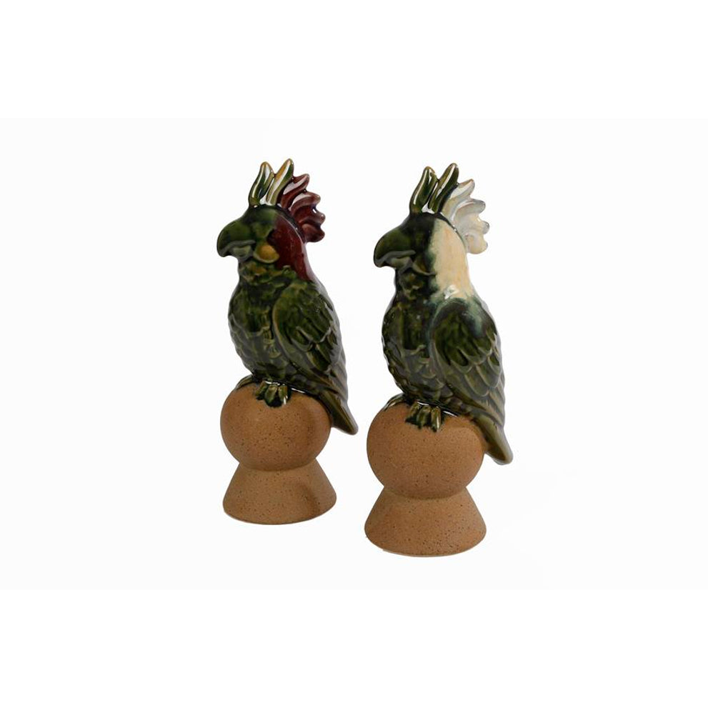 Sculptuur Parrot green with red or white 2 ass aardewerk 20