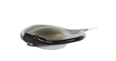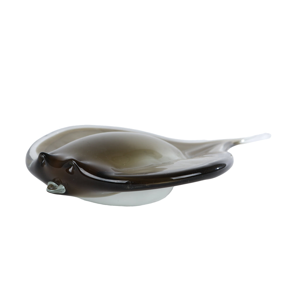Sculptuur "Platvis" donkergrijs glas 31x18x7cm
