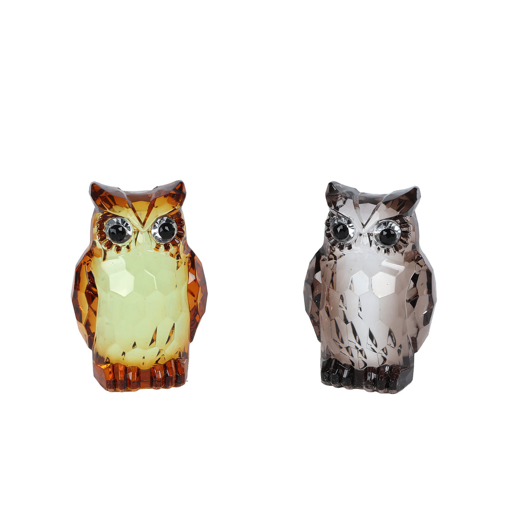 Sculptuur "Uil" grijs/brown 2 assortie acryl 4x4x7cm