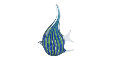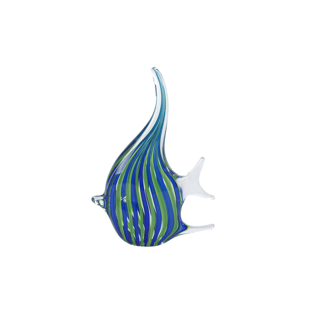 Sculptuur "Vis" streep blauw/groen glas 13x4x21cm