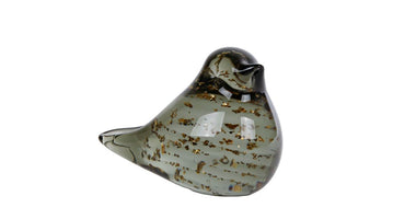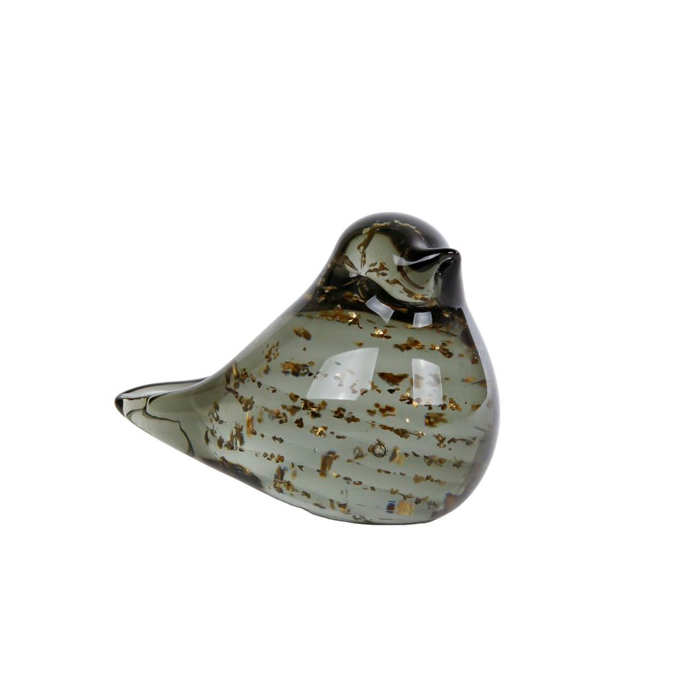 Sculptuur vogel "Finch" helder/d.groen glas 8,5x5x6cm