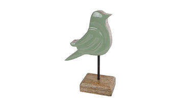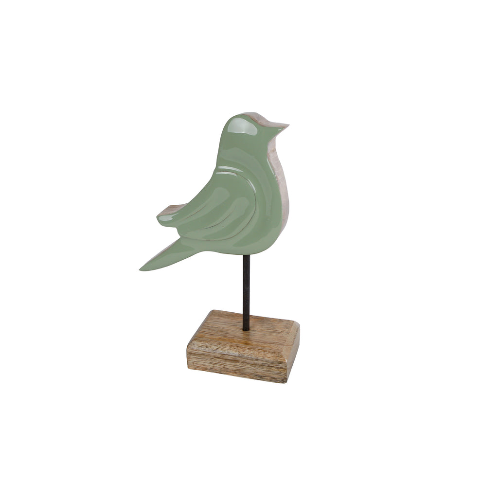 Sculptuur vogel "Tomtit" L groen/naturel mango 18x13x5cm