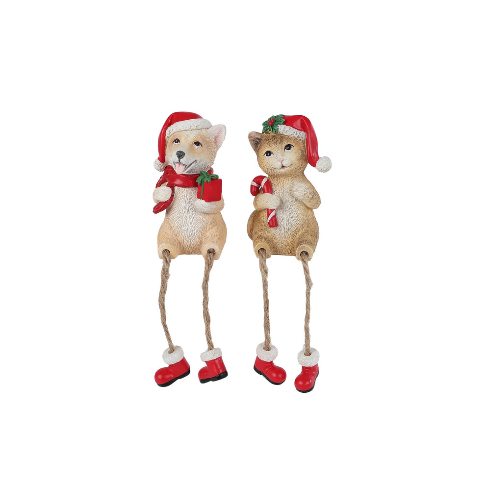 Sculptuur "Xmas Dog & Cat" a2 polystone 4x4,5x7,5cm