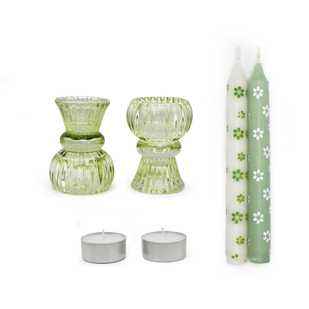 Seasons giftbox With love Duo Candle holder green flower