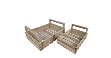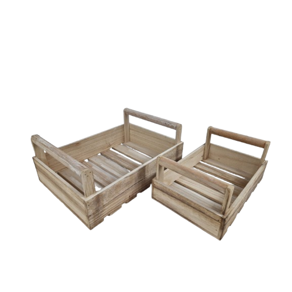 Set/2 Krat/Dienblad 35x25x14cm hout naturel-wash