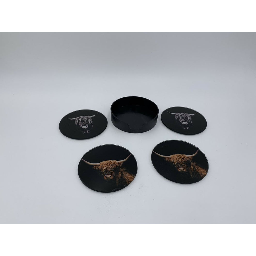 Set/4 glazen onderzetters Ø10cm Buffalo Black/Brown