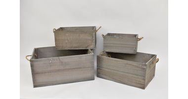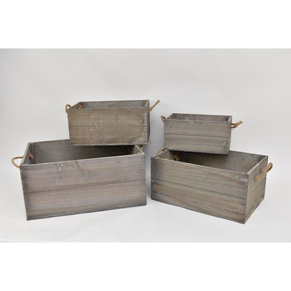 Set/4 houten kisten rechthoek met jute oren 53x40x24,5cm grijs