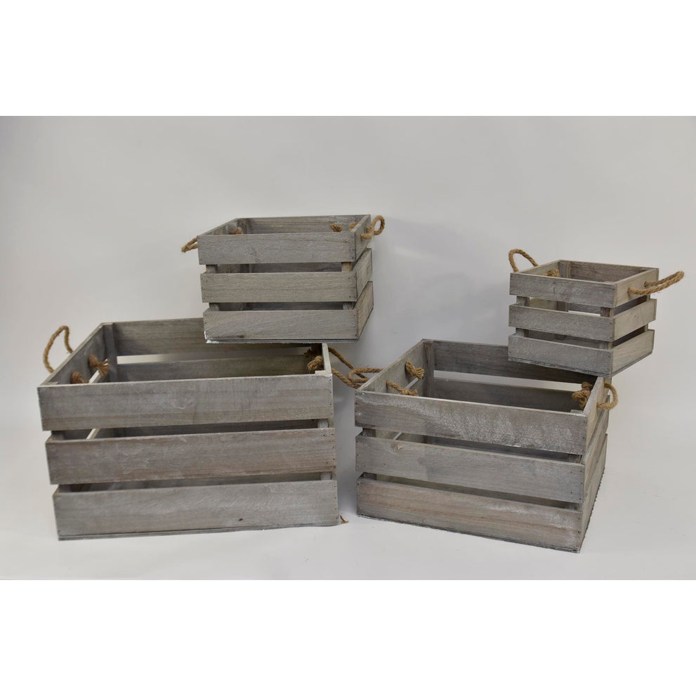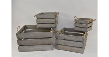 Set/4 houten kisten vierkant met jute oren 50x50x28cm grijs