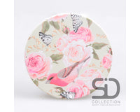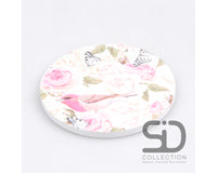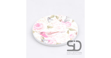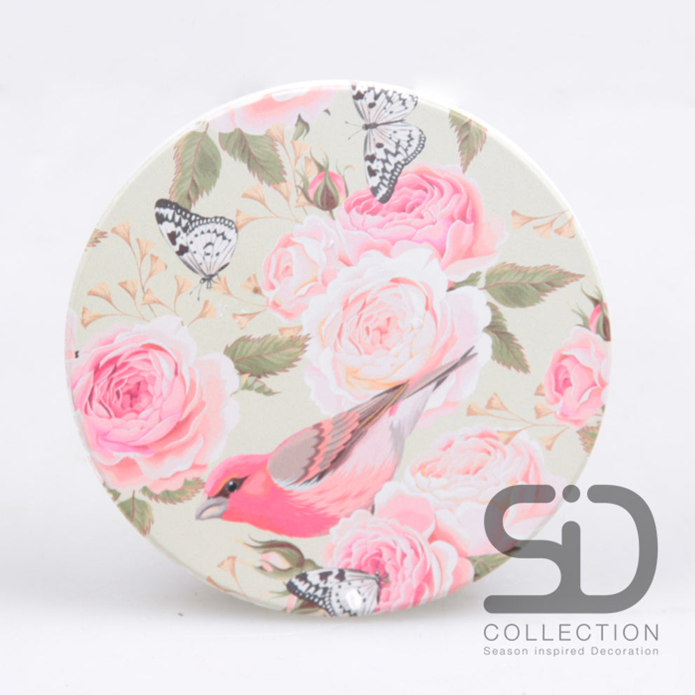 SET/4 ONDERZETTER ROND VOGEL & VLINDERS ROZE 10X10X0.7 CM