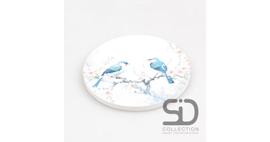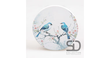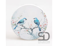 SET/4 ONDERZETTER ROND VOGELS BLAUW BLOESEM 10X10X0.7 CM