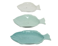 Set a 3 Dienblad aardewerk blauw/kleur 58x40x2cm