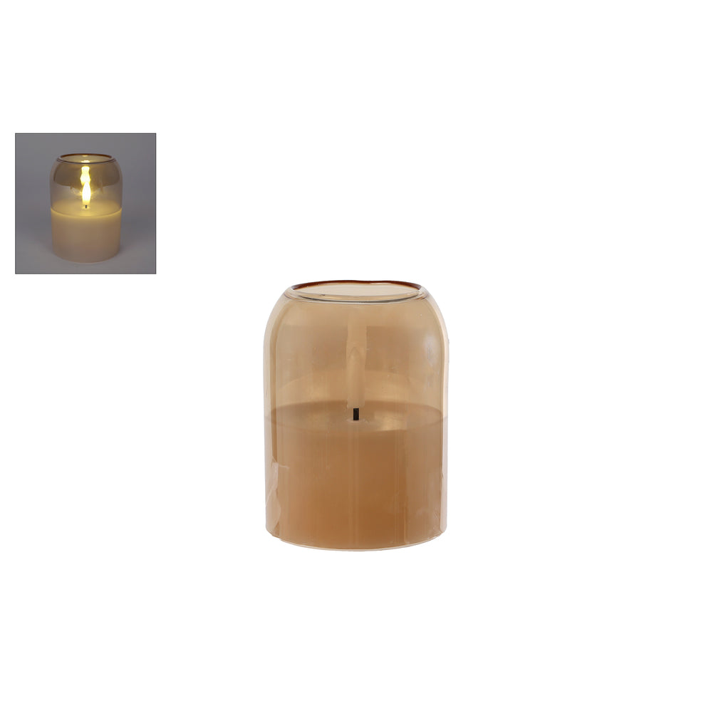 Sfeerverlichting LED "Kaisa" S amber glas/kaars 7,5x7,5x10cm