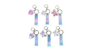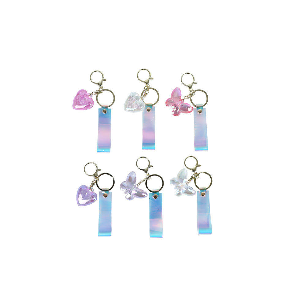 Sleutelhanger holografisch met koord en clip en hart/vlinder assortie