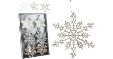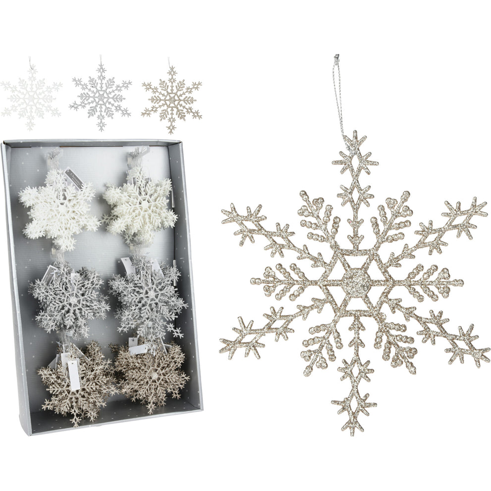 SNEEUWVLOK HANGDECO 15CM 3 ASSORTIE MIX GLITTER