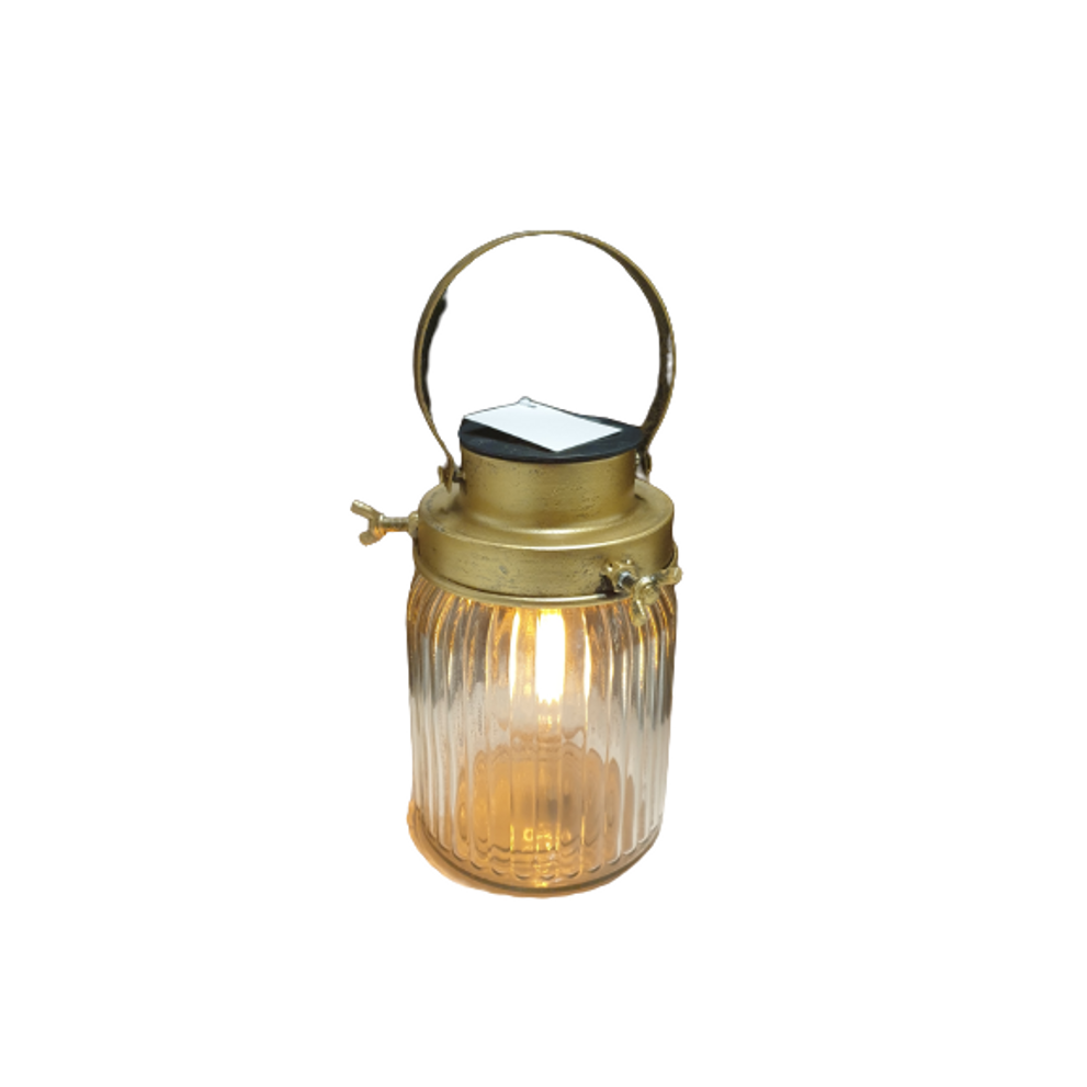 SOLAR GLAZEN POT MET RETRO LAMP GOUD 11X18CM