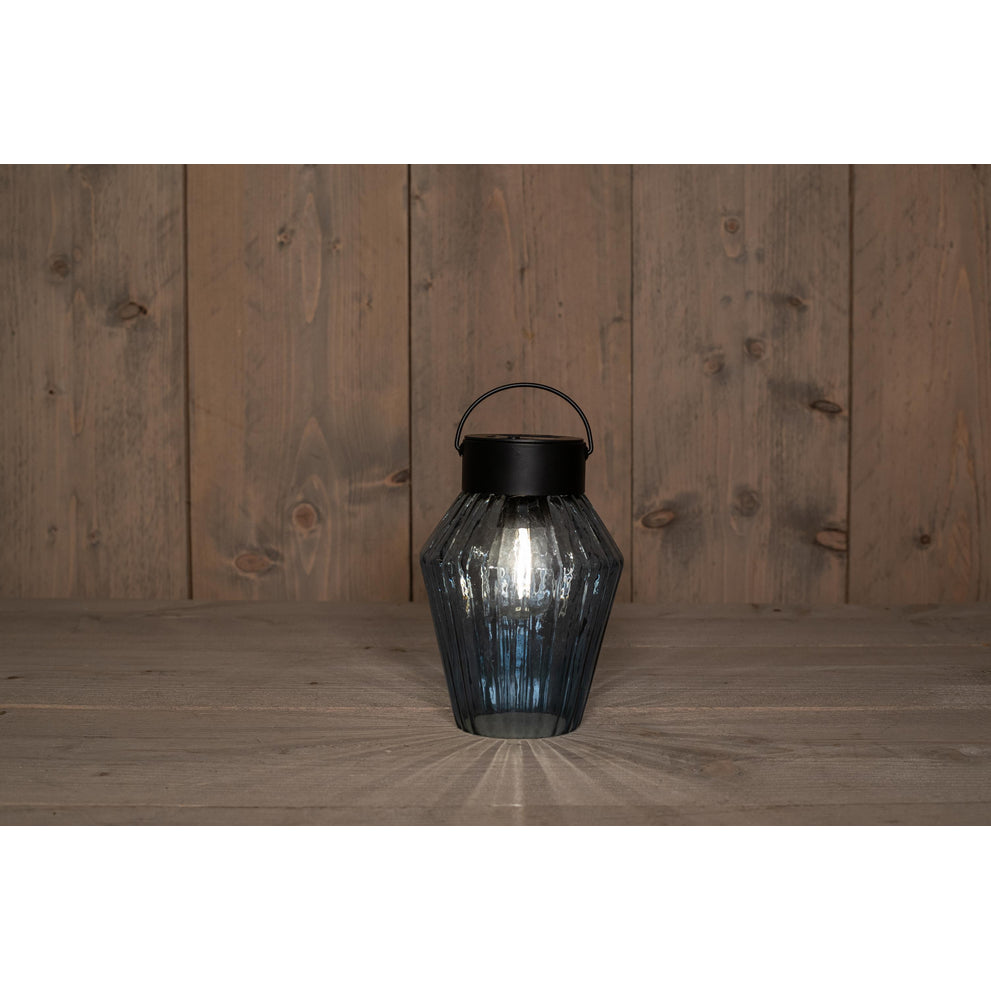 SOLAR GLAZEN RETRO LAMP BLAUW 12X16CM