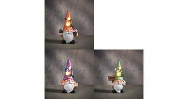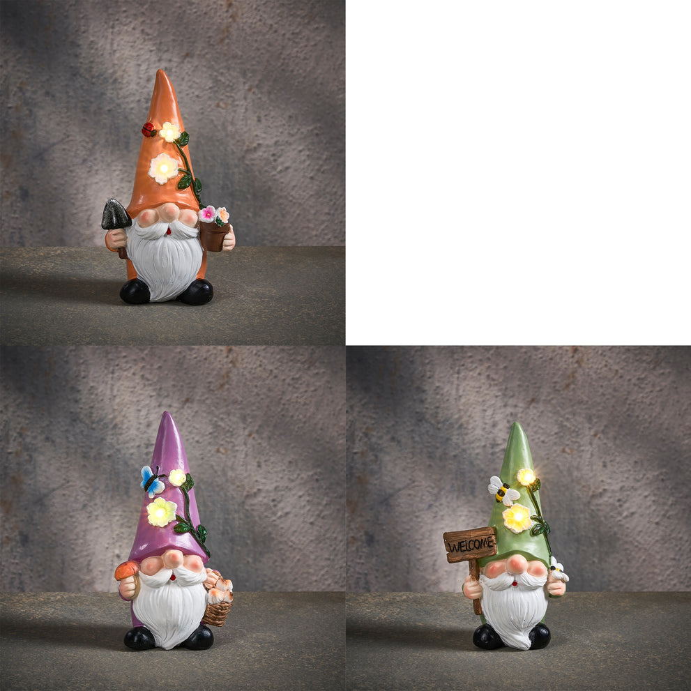 Solar lamp gnoom led groen oranje paars warm wit 3 assorti - l10xb6,5xh17,5cm